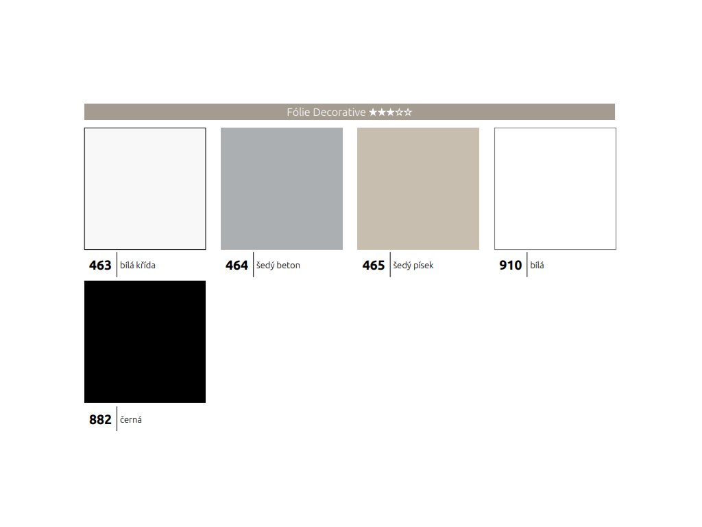 - povrchová úprava: fólie DECORATIVE nebo 3D fólie DECOR DESIGN.