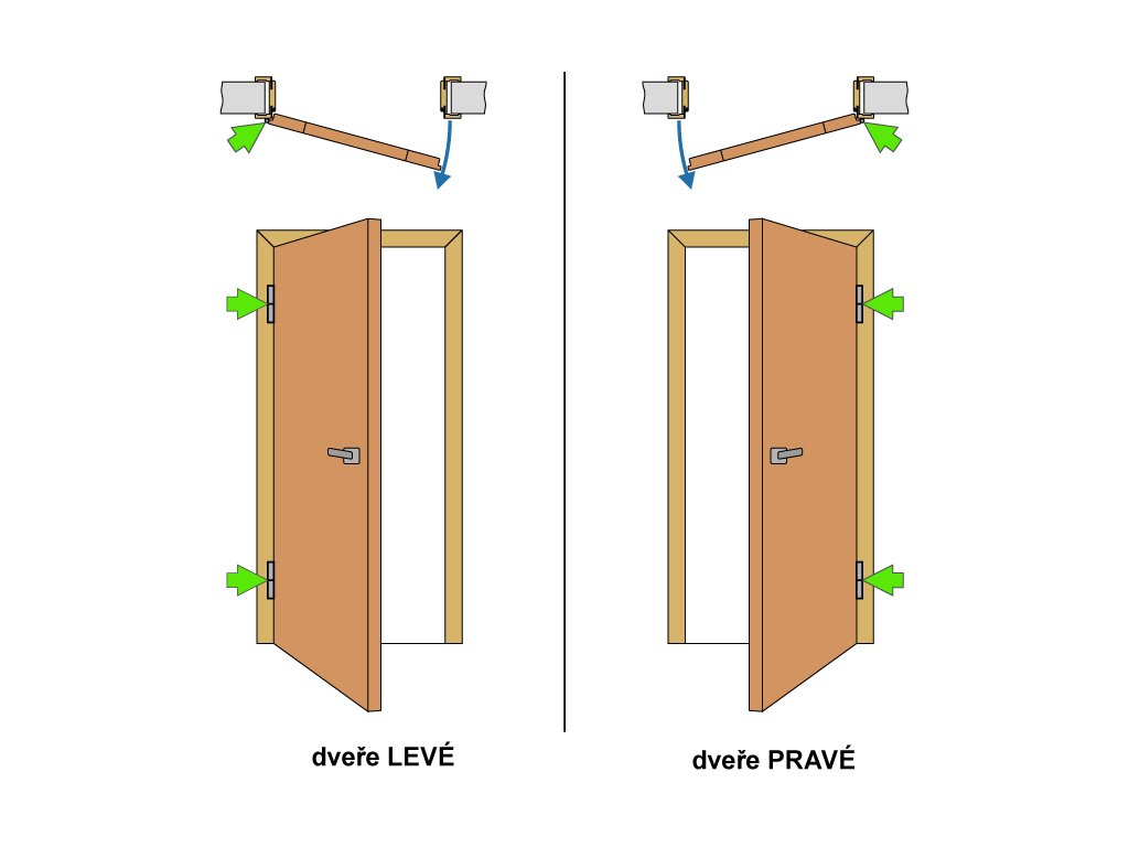 Levé dveře = ze širší strany dveří fyzicky očima vidíte panty vlevo.
